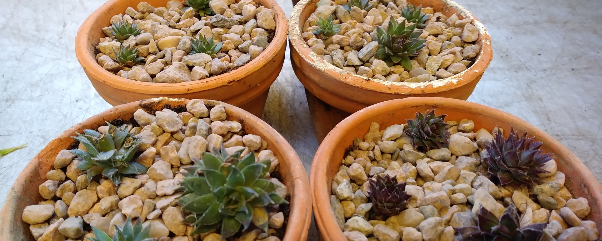 This was a little project I’d had my eyes on for a few weeks. We have a decent collection of succulents in the greenhouse and there was babies on quite a few. So I took the babies off the sempervivum and potted them up in a gritty compost topped with more grit to make a neat display to sit along the windowsill. It is a very simple and effective way to propagate them and get new plants for free.