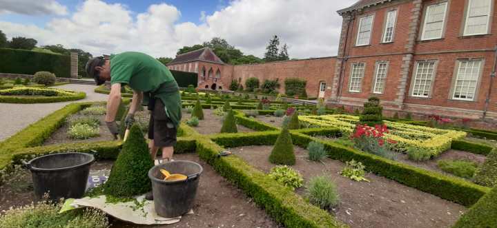 I was on a topiary cutting marathon at this point, the pinnacle of which was cutting all 218 of the box cones in the Hanbury parterre. At this point I must acknowledge my partner coming in to volunteer for a couple of days to help with this slog. It was a labour of love and felt a never-ending (and back-breaking) task, but I did get a lot of kudos from visitors when they chatted to me.