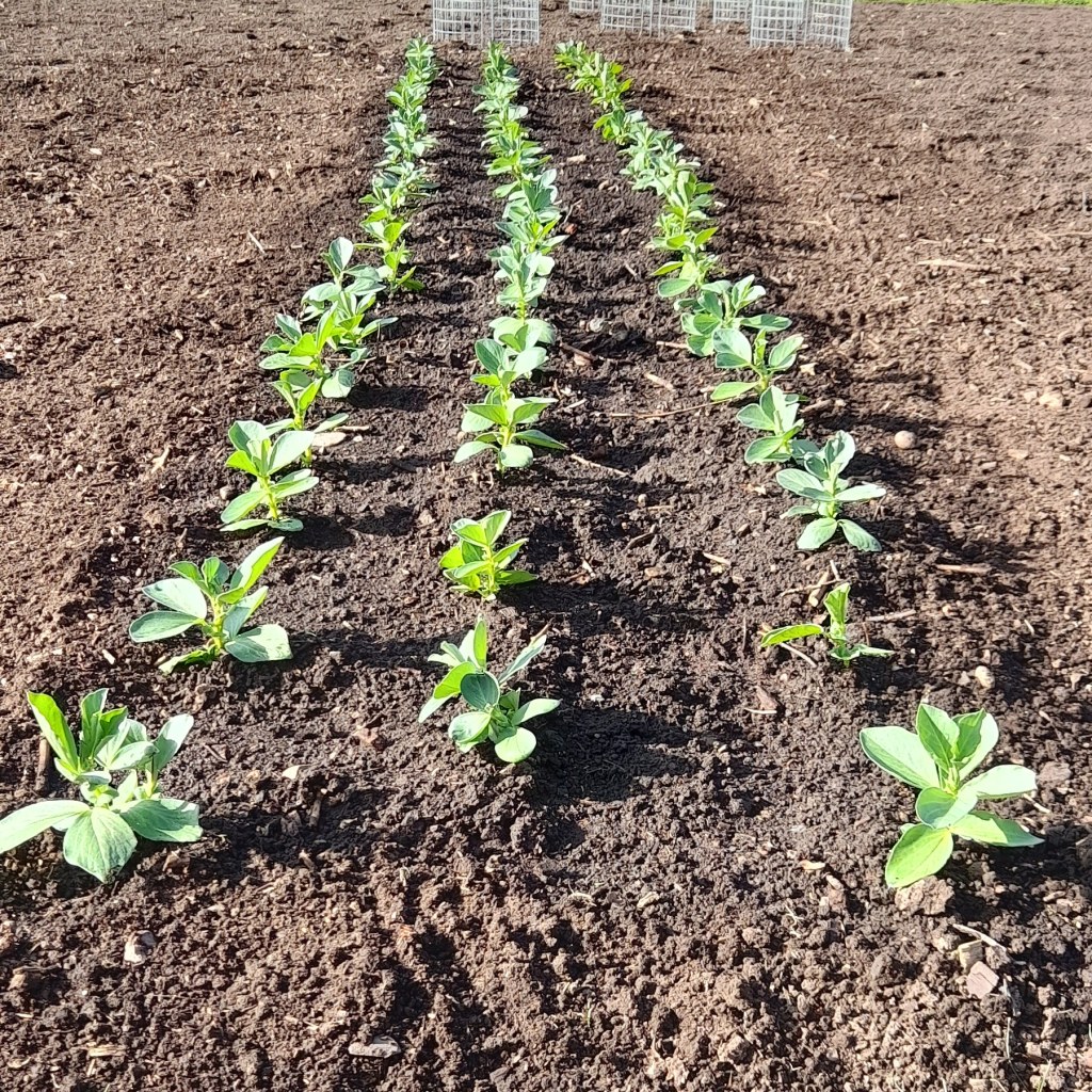 That has meant that – drum roll please – the first plants have now gone into the ground. The broad beans that were sown back in January have been patiently waiting and finally got their wish to be planted out. Broad beans are always the first thing to be planted each year and the onions, which were also planted way back in the early weeks of the year, should not be too far behind.