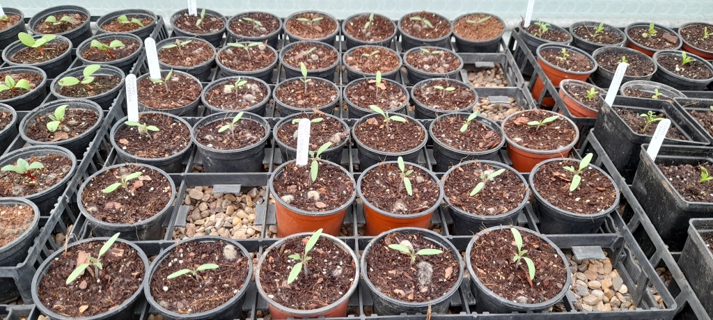 The seed sowing for the walled garden crops has been steadily increasing. The chillis, celeriac, dwarf french bean, peas and leeks have been sown, as well as our range of tomatoes. I picked a good selection of tomatoes for this year, a variety of colours and sizes were chosen, though I had to limit myself to four types due to space (I could have gone a lot more crazy if permitted – maybe next year). The varieties I opted are Pozzano, Yellow Submarine, Zuckertraube and Tigerella.