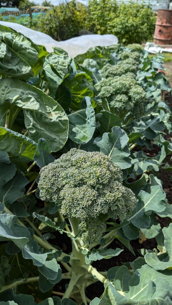 The brassicas have done really well this year, against all odds. They have loved the cooler temperatures of late spring and early summer and enjoyed being tucked away under their protective netting. I got a bumper harvest of calabrese, of which many heads have been prepped and frozen, and a few good cauliflower heads, while the cabbages are looking in fantastic shape at the minute. I did get a perennial broccoli plant that I added in June too and do plan to get some kale plants soon.