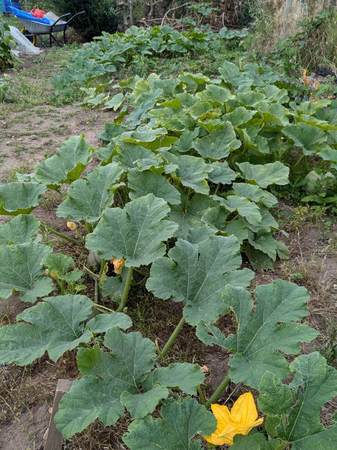 Running down along the fence line of half of the plot are the squashes and pumpkins. I am happy to let these plants sprawl away and provide ground cover – and they are also developing a good selection of fruits on there. There are also some raspberry canes, strawberries, and rhubarb along that fenceline. It is a bit of a messier part of the plot and the ideal place to simply let the pumpkins and squashes do their thing at the moment.