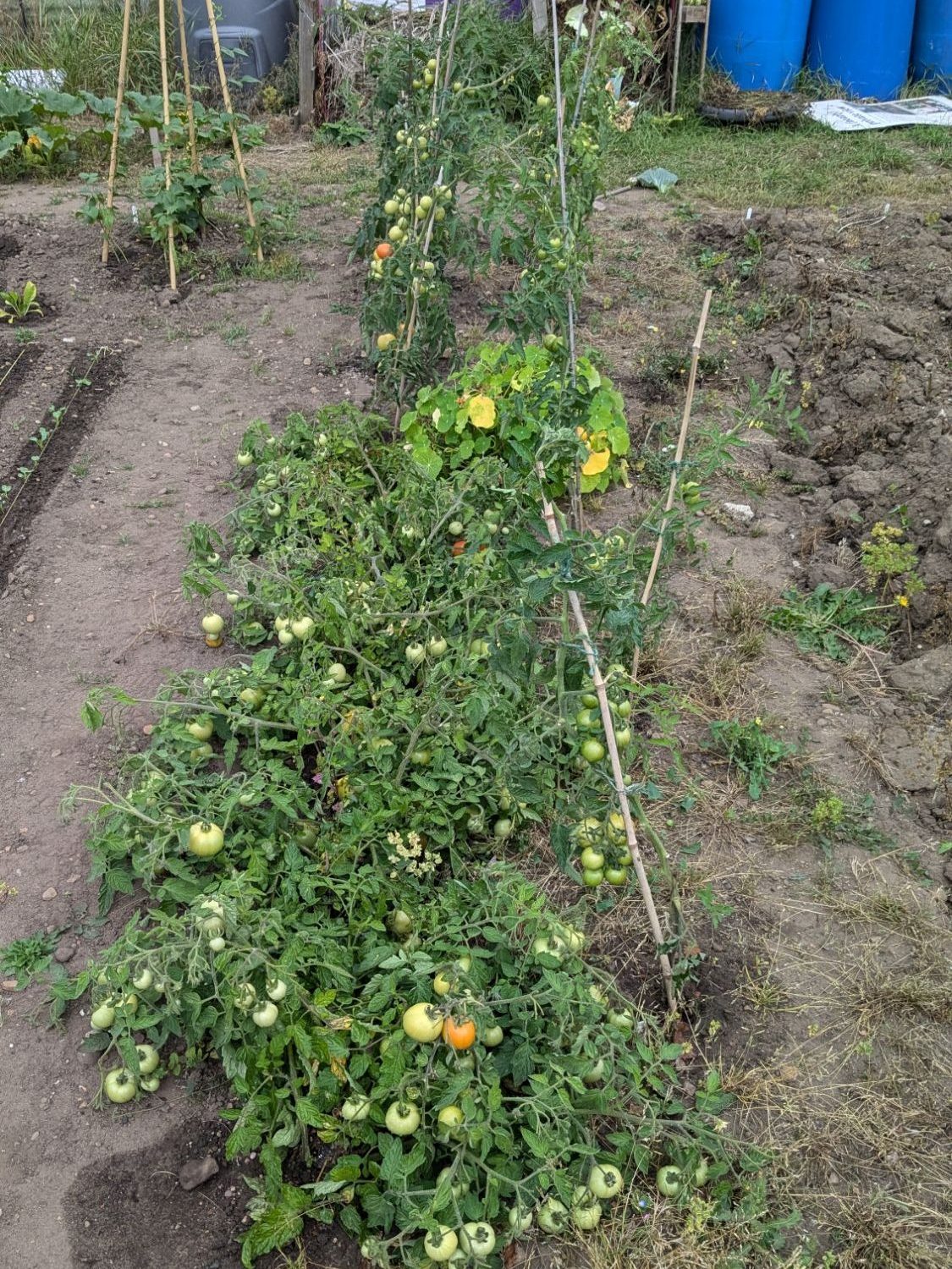 Not pictured to the right of the tomatoes is where the potatoes were. I am still harvesting them. The plants got blight and all the foliage got chopped down, so it wasn’t worthy of being photographed. The harvests have been small so far, as the plants really got attacked by slugs which was a big surprise to me. But few homegrown potatoes are better than none and I am still lifting them.